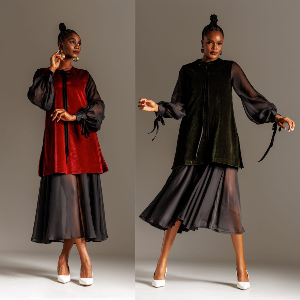PRESS LOOK 9– OMA DRESS An asymmetric multi-texture evening dress featuring an intricate hand-cut... LOOK 8– NGOZI DRESS Two-tone Velvet and chiffon dress with semi-sheer lower bottom... LOOK 6– NMA CO-ORD The abstract collar and mismatched button detail on the... LOOK 5– UGO CO-ORD Lace and mesh insert corset blouse paired with a... LOOK 4– DICHE CO-ORD Additionally, the corseted top with prominent boning lines juxtaposed... LOOK 3– ADANMA MAXI Furthermore, a contemporary take on the classic boubou featuring...