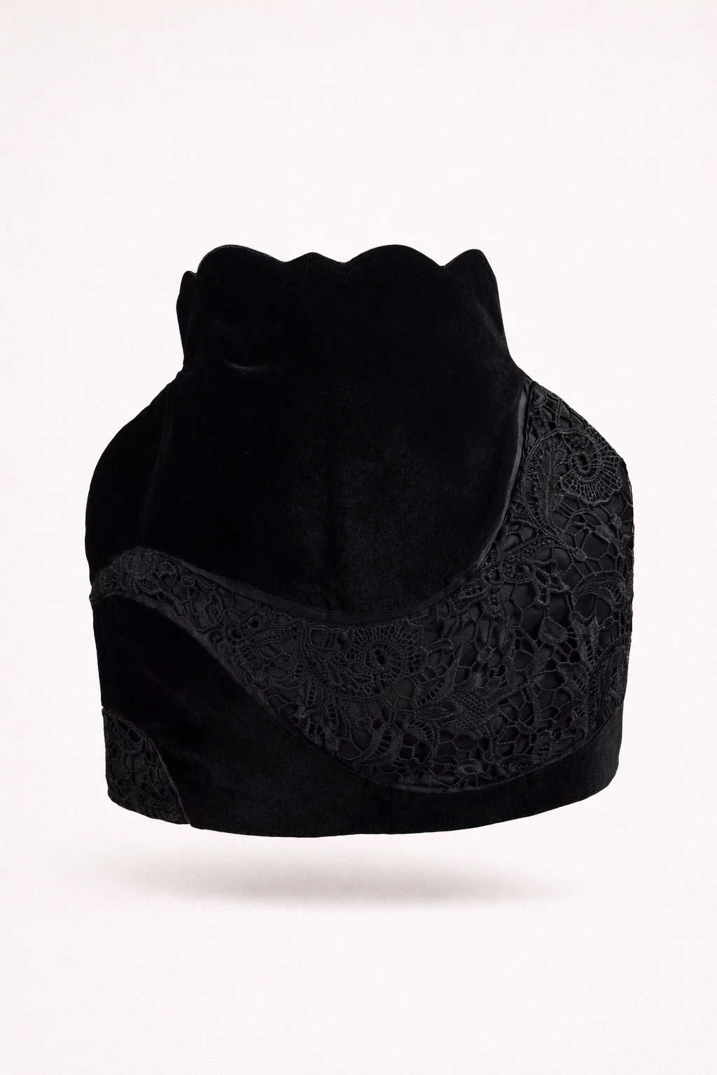 Mini skirt with lace and velvet detailing is our chic take on a little black skirt.exxagerated hip detail that instantly gives an illusion of an hour glass look.