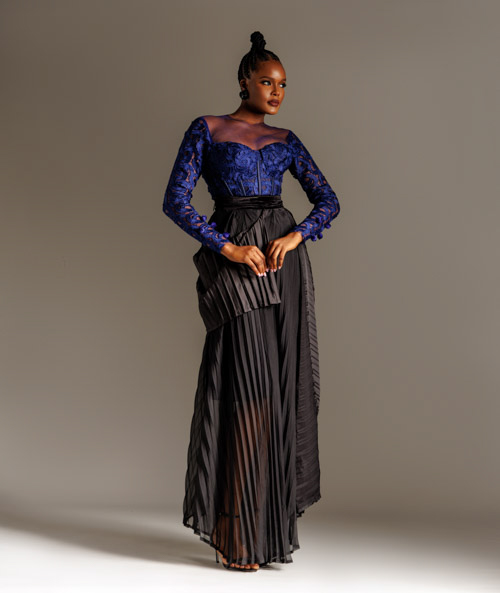 Lace and mesh insert corset blouse adorned with velvet balls at the ends of the sleeve, inbuilt invisible corset concealed with an outer zip..This top is the perfect occasion piece that also fits in seamlessly into the rest of your wardrobe as it can be worn together or styled with staple basics for a variety of looks.